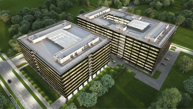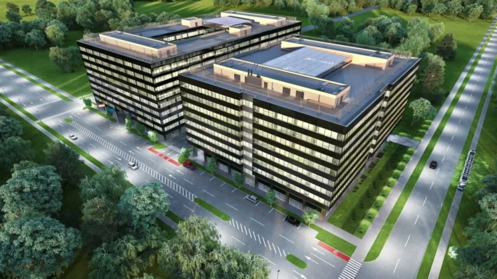 Relevee 3D, trasări topografice de înaltă precizie și asistență la montaj pereți cortină. Clădire de birouri / Anul finalizării: 2017 / Suprafață construită: aprox: 78.000 mp.