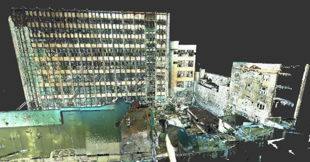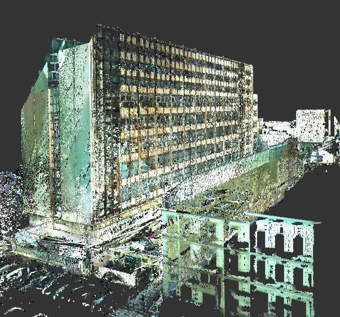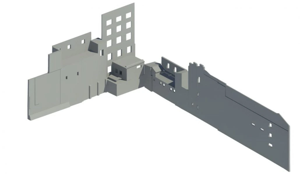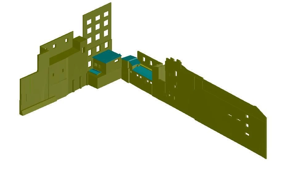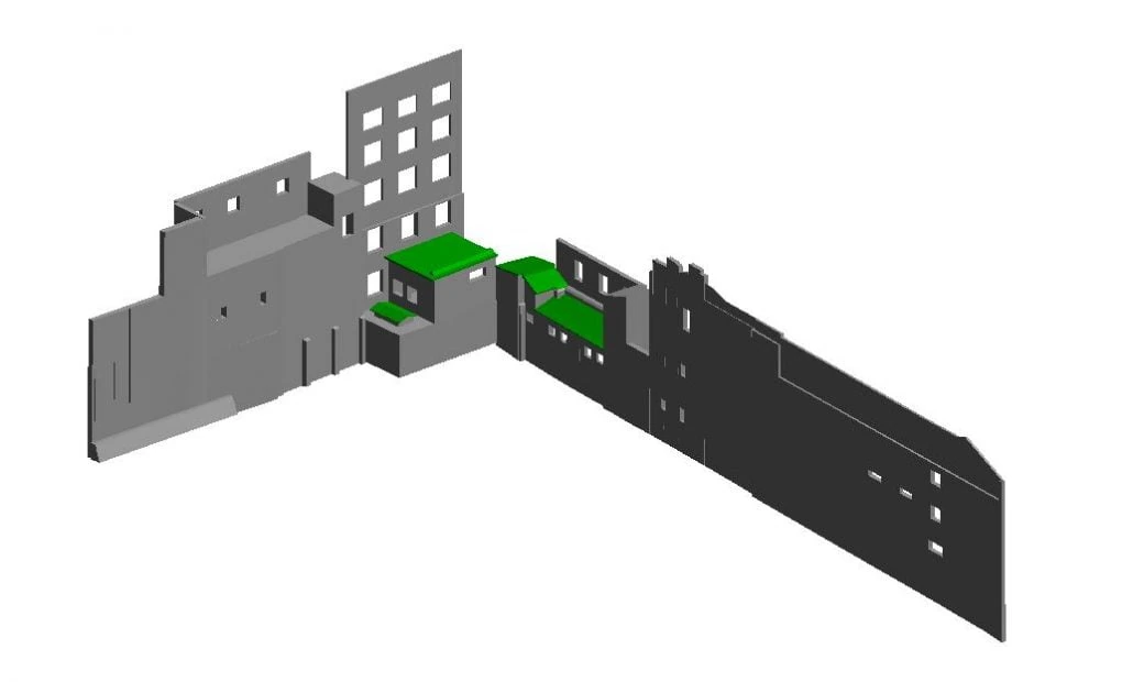Scanare laser 3D, relevee fațade vecine, nori de puncte 3D, model 3D Revit fatade vecine, consultanță tehnică de specialitate. Suprafață: 4740 mp.
